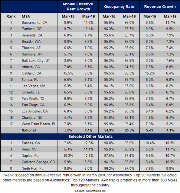 After resting at No. 2 for the previous two months, Sacramento ended the seven-month reign of Portland, OR with 11.6% rent growth in March. Though Portland fell to second place, its 10.1% effective rent growth marked the 12th straight month the market recorded a double-digit rate. Read more.
